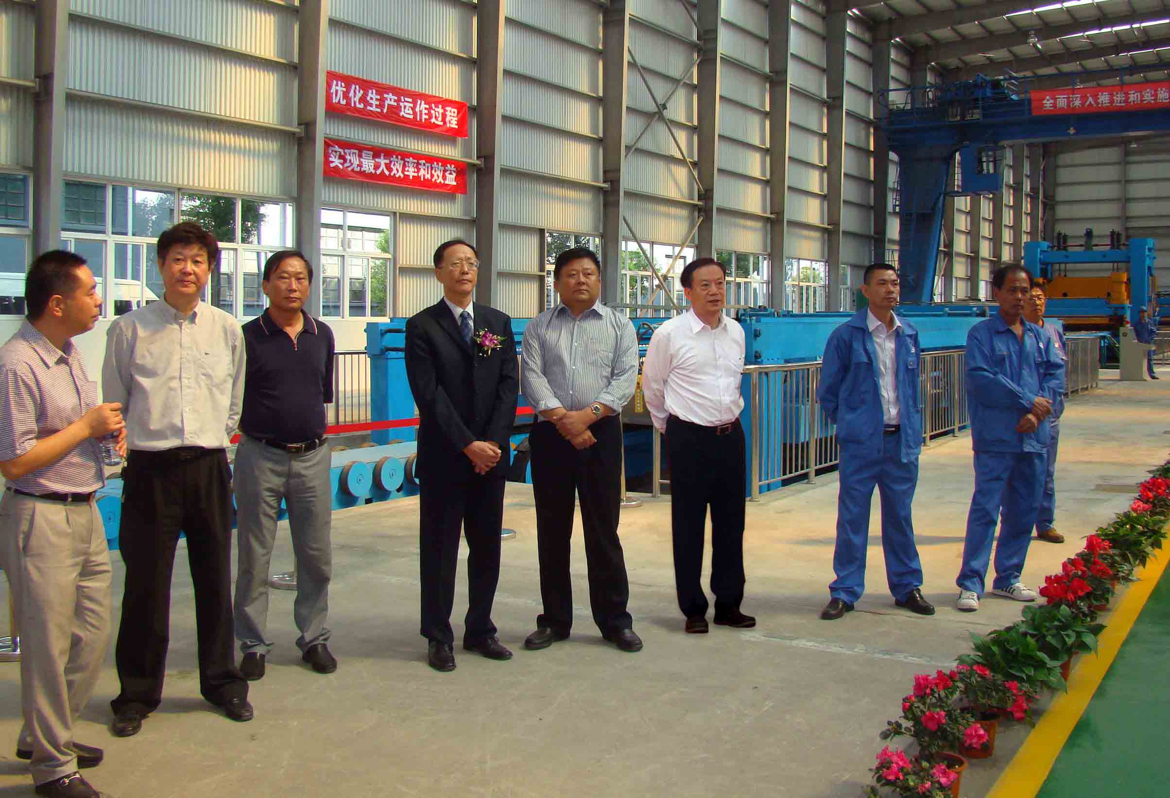 10月11日,康總、朱洪軍副總一行參加了“上海物資貿易股份有限公司黑色金屬分公司技改項目竣工慶典儀式?!鄙虾J袇^各級領導、來自全國各地新老客戶參加了慶典儀式。上海物資貿易股份有限公司黑色金屬分公司技改項目,是從宏康集團購進一條3~12×2000MM熱軋鋼卷縱剪分條機組、一條5~25.4×3000MM的熱軋開卷矯平橫切生產線,其中5~25.4×3000MM的熱軋開卷矯平橫切生產線是目前國內唯一能開矯剪切3000MM超寬熱卷的機組。